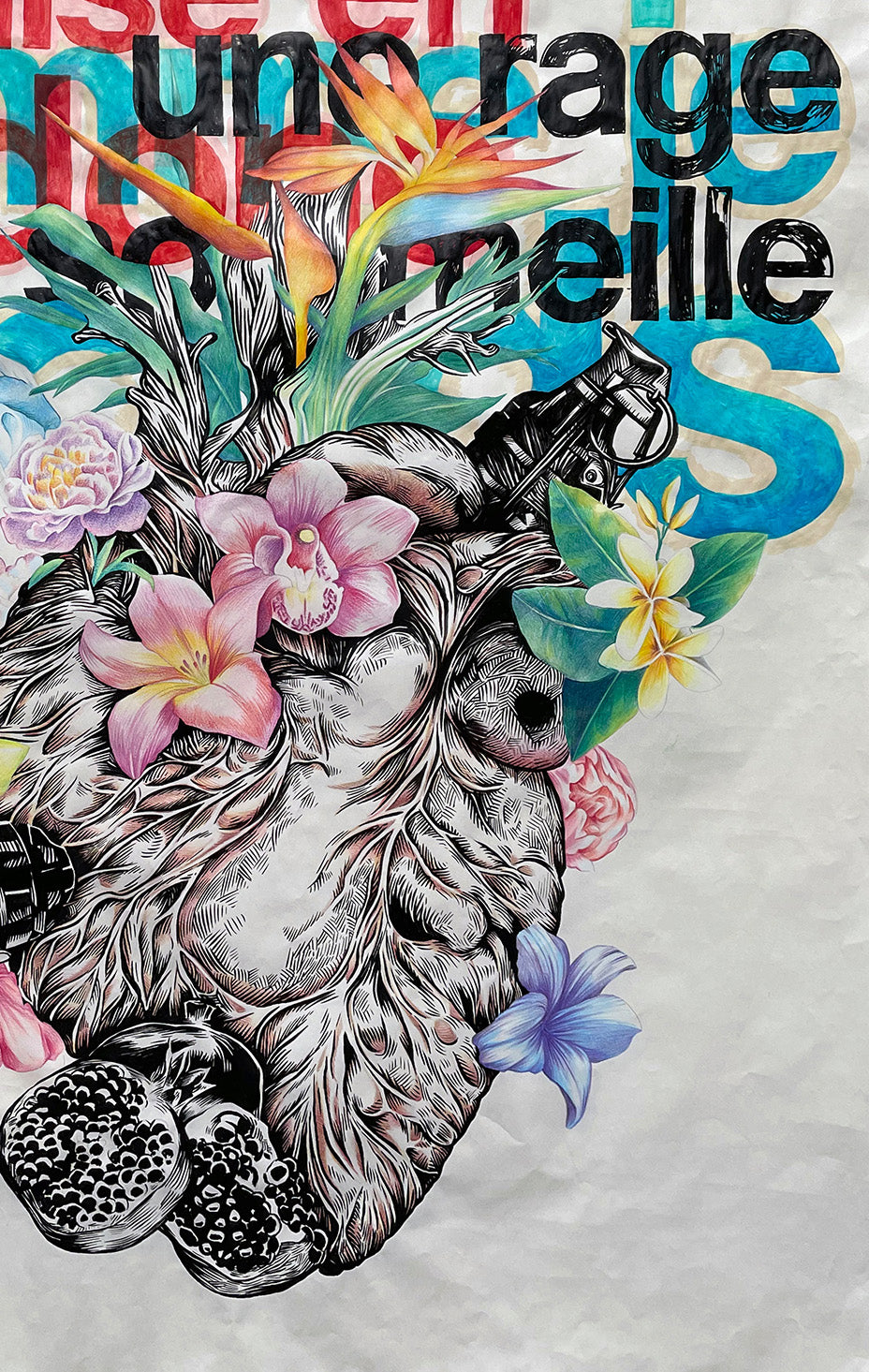 La force et la fragilité sont au cœur du texte comme dans l’interprétation de l’œuvre graphique au travers du mélange de techniques : peinture, crayons de couleurs, encre de Chine… La force émane de chaque trait, chaque nuance, chaque coup de pinceau, témoignant de la maîtrise de l'artiste et de sa capacité à exprimer des émotions intenses à travers son œuvre.